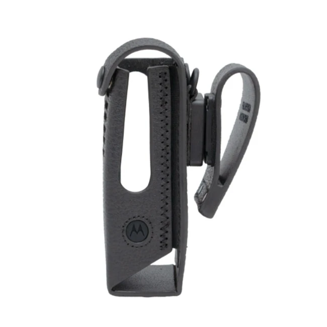 Pouzdro typ PMLN8302 z kvalitní tvrdé kůže s otočným opaskovým okem 3" pro profesionální digitální radiostanice (vysílačky) Motorola R7 NKP a R7a (bez displeje). Těžké pevné kožené pouzdro PMLN 8302 je vybaveno otočným závěsem pro snadné sejmutí z opasku. Pouzdro s vysílačkou Motorola R7 NKP/R7a se otočením o 180 stupňů v opaskovém oku uvolní a jde sejmout. Pouzdro tak nemusí být sundáváno z opasku na kterém zůstává pouze opaskové oko.