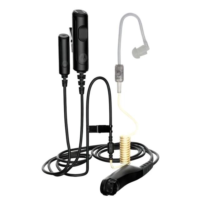 Tato třívodičová diskrétní audio sada se vyznačuje efektivním designem s odolnými a robustními kabely, které vydrží náročné pracovní podmínky. Odolný a pohodlný průsvitný zvukovod můžete rychle odpojit, což usnadňuje sdílení mezi směnami. Jeden z vodičů je určen pro poslech přijímaného hovoru, druhý vodič je zakončen mikrofonem a třetí vodič pro přístup k vysílacímu (PTT) a druhému programovatelnému tlačítku. Nejmodernější technologie IMPRES™ od společnosti Motorola umožňuje komunikaci mezi rádiostanicí a audio příslušenstvím. Výsledkem je optimální zvukový výkon, vylepšené zesílení zvuku a rozsáhlejší možnosti přizpůsobení, což zajišťuje komunikaci nejvyšší kvality. Posuňte sledovací operace na novou úroveň s audio sadami, které vám umožňují diskrétně vysílat a přijímat komunikaci. Toto sluchátko podporuje funkci hlasitého zvuku, kterou připojená radiostanice Motorola R7 umožňuje. Sluchátko je připraveno pro širokopásmový provoz, aby poskytoval lepší kvalitu zvuku.